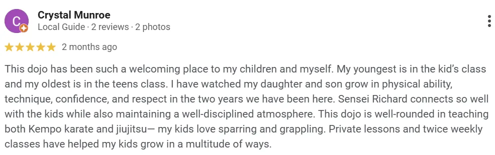 Students build real self-defense skills, gain confidence to handle bullies, improve fitness through dynamic training, and even pick up healthy nutrition habits. Parents stay involved with progress check-ins, while younger students thrive in fun, safe competitions that keep them motivated and supported.